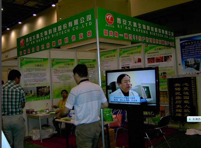 參加中韓貿洽會 走向國際大市場 參加青島食品配料展 尋求發(fā)展新商機 水蘇糖,我要認識你! 大鵬生物參加2012中國國際輕工消費品展覽會 恭賀大鵬生物榮獲中國輕工展覽科技創(chuàng)新獎 大鵬生物參加第五屆中國國際飲料工業(yè)科技展 第四屆中國營養(yǎng)產(chǎn)業(yè)高層論壇開幕 大鵬公司董事長與公眾營養(yǎng)健康中心主任于小冬在水蘇糖聯(lián)誼會上 高鵬董事長在第四屆中國營養(yǎng)產(chǎn)業(yè)高層論壇上 公眾營養(yǎng)改善OLIGO項目啟動儀式